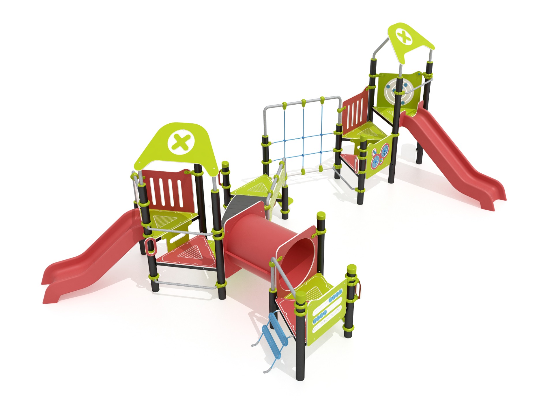 Design coloré, matériaux durables, usage en crèche, école ou parc public.