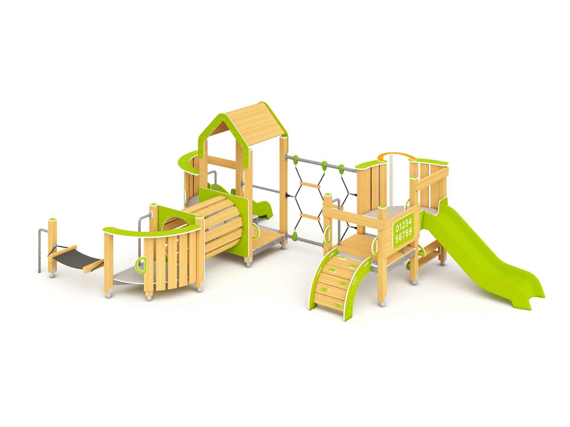 Pensée pour favoriser l'expérimentation, la motricité et le jeu libre, ZURA combine le bois avec des éléments durables en métal et HDPE. Son design chaleureux et coloré s'intègre aussi bien en environnement urbain que paysager.